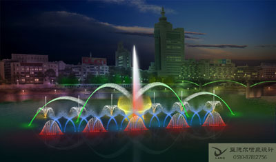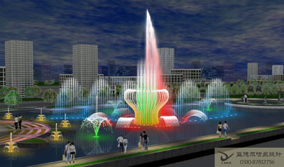 利用播放或现场演奏音乐信号控制喷泉和灯光的喷泉。根据专用的音乐喷泉控制系统使喷水造型变化和灯光的变化随音乐的节奏、旋律的起伏变化而变化,美妙绝伦,同步率可达到±0.02秒,既可以为实时控制,编辑控制,又可以为电脑智能控制。用户可以在编辑界面编写自己喜爱的音乐程序。播放系统可以实现音乐、水、灯光气氛统一,同步播放。