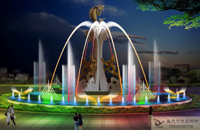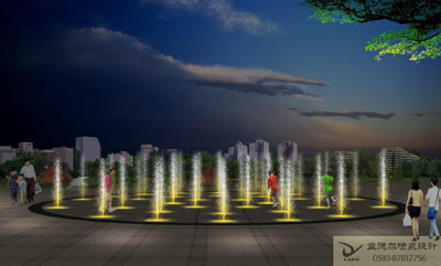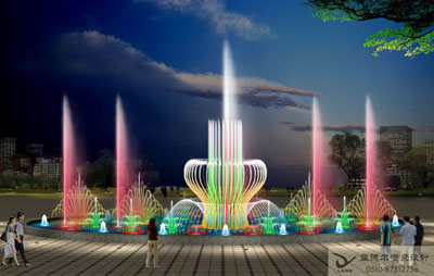 一般采用多种类型喷泉组合,集光、水、声、画、触为一体,做到水乳相融、彼此生辉。水形宏伟壮观,在控制系统的控制下,千变万化的水景将带给游人一种梦幻般的感觉。晚上在五彩缤纷的灯光的烘托下,更显富丽堂皇,使人们在视听上得到一种美不胜收的享受