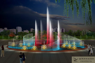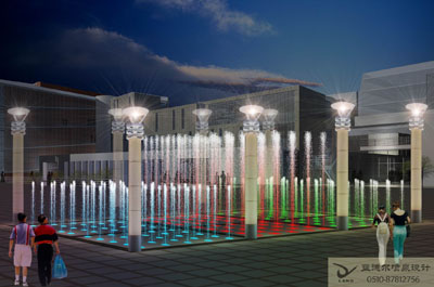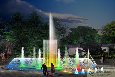 一般采用多种类型喷泉组合,集光、水、声、画、触为一体,做到水乳相融、彼此生辉。水形宏伟壮观,在控制系统的控制下,千变万化的水景将带给游人一种梦幻般的感觉。晚上在五彩缤纷的灯光的烘托下,更显富丽堂皇,使人们在视听上得到一种美不胜收的享受