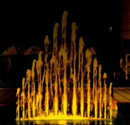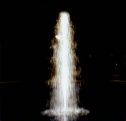 喷水时外观效果庞大丰满,粗壮挺拔,喷头安装在导流上端与水面水平,喷水时能将池水带出,形成粗大壮观的水柱,抗风力较强。这种喷头广泛用于广场和公共场所喷水池中。