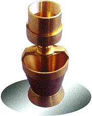 也称喷泉喷嘴全部采用铜或不锈钢制作,这样具有黄金的色彩或银光闪闪,喷头显得豪华气派。其工艺精巧美观,结构合理,性能高效节能。其中常用的有:KT可调直流喷头、BQ半球形喷头、QN牵牛花喷头、SB树冰形喷头、HZ花柱喷头、LH礼花喷头、YQ涌泉喷头、YZ玉柱喷头、XZ旋转喷头、XZ旋转花蓝、XZ旋转蟹爪兰、BZ扇形喷头、WZ雾状喷头、JQ加气喷头、ZS直上喷头、DX定向水帘喷头、PG蒲公英喷头、KQ孔雀开屏喷头、HX环隙式喷头、GS高射喷头、SM水幕喷头、BM百米喷头、CP草坪喷头等产品系列。