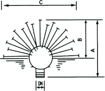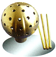 也称孔雀开屏喷头,但它结构原理与构造形式和开屏(散射)喷头都不相同,而与蒲公英喷头基本相同,其区别仅在于它是半球形,喷出的水姿像半环蒲公英,又像孔雀开屏。对水质的要求与蒲公英喷头相同,可应用于各种喷水池中。