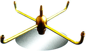 又称喇叭花喷头。它是利用折射原理,喷水时形成均匀的薄膜,其形状在无风和一定的水压下可形成完整的喇叭花型。这种喷水适用于室内或庭院的喷水池。在喷头下方可安装阀门调节水量,同时还可以调节喷头顶部的盖帽,使喷水花型达到最佳效果,半球喷头与此原理相同。