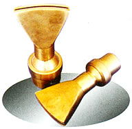 也称喷泉喷嘴全部采用铜或不锈钢制作,这样具有黄金的色彩或银光闪闪,喷头显得豪华气派。其工艺精巧美观,结构合理,性能高效节能。其中常用的有:KT可调直流喷头、BQ半球形喷头、QN牵牛花喷头、SB树冰形喷头、HZ花柱喷头、LH礼花喷头、YQ涌泉喷头、YZ玉柱喷头、XZ旋转喷头、XZ旋转花蓝、XZ旋转蟹爪兰、BZ扇形喷头、WZ雾状喷头、JQ加气喷头、ZS直上喷头、DX定向水帘喷头、PG蒲公英喷头、KQ孔雀开屏喷头、HX环隙式喷头、GS高射喷头、SM水幕喷头、BM百米喷头、CP草坪喷头等产品系列。