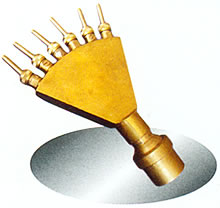是一种多嘴散射喷头,它是将一些直射小喷嘴设在同一个配水室上,喷水造型尤如孔雀开屏,又像扇面。因此,又称孔雀或孔雀开屏喷头。可垂直安装,也可倾斜安装。