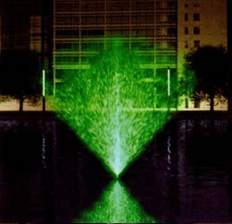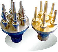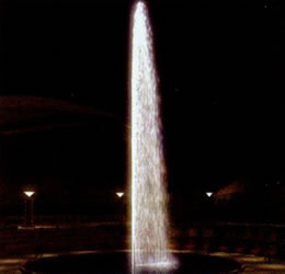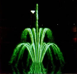 是在同一个配水箱上安装许多万向直流喷嘴,当这些喷嘴规格相同时,喷出的水姿雄壮笔直;当这些喷嘴规格不完全相同时,大小喷嘴布设得当,喷出的水姿粗壮有力,层次分明、主题突出,是大型喷泉必备的主要喷头。该喷头也叫中心水柱。