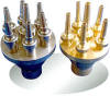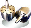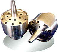 也称喷泉喷嘴全部采用铜或不锈钢制作,这样具有黄金的色彩或银光闪闪,喷头显得豪华气派。其工艺精巧美观,结构合理,性能高效节能。其中常用的有:KT可调直流喷头、BQ半球形喷头、QN牵牛花喷头、SB树冰形喷头、HZ花柱喷头、LH礼花喷头、YQ涌泉喷头、YZ玉柱喷头、XZ旋转喷头、XZ旋转花蓝、XZ旋转蟹爪兰、BZ扇形喷头、WZ雾状喷头、JQ加气喷头、ZS直上喷头、DX定向水帘喷头、PG蒲公英喷头、KQ孔雀开屏喷头、HX环隙式喷头、GS高射喷头、SM水幕喷头、BM百米喷头、CP草坪喷头等产品系列。